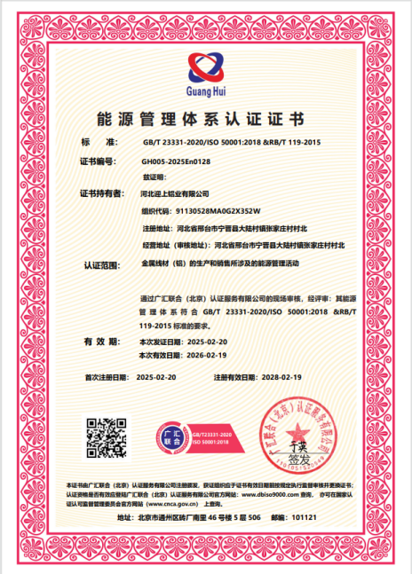 Energy Management System Certification CertificateEnergy Management System Certification Certificate